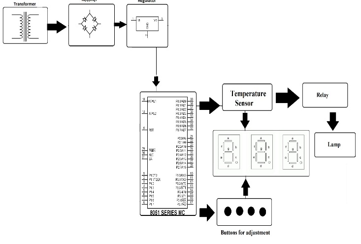 Our proposed project consists of digital temperature sensors for more accurate temperature control in various industries. Our system overcomes the disadvantages of thermostat/analog systems in terms of accuracy. This system can be used in baby incubators where it is very important to maintain precise temperatures. Incubators are often used for creating temperature controlled suitable environments for prematurely newborn babies. The system displays temperature in a LCD display, as soon as the temperature exceeds our set limit; it automatically switches off the load (heater), to control the temperature. The heater is demonstrated with the help of a lamp. The system uses a digital temperature sensor in order to detect temperature and pass on the data to the microcontroller. The 8051 microcontroller processes data and sends the temperature to be displayed on LCD screen. The display consists of 7 segment display unit to display up to 3 numbers. It consists of 4 push buttons for setting the high and low temperatures. Pressing set button allows user to increment and decrement high and low temperatures. After that the system detects temperature and switches the load when it goes beyond set limits.
