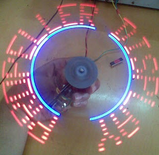 The rotating LED displays can be cylindrical or disc shaped. The cylindrical displays are capable of displaying texts and digits, and the disc-shaped displays are capable of displaying analog clock. A Propeller display is a mechanically-scanned device that displays its characters in a digital format.